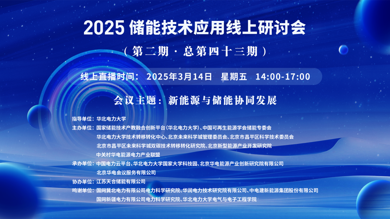 2025年儲(chǔ)能技術(shù)應(yīng)用線上研討會(huì)(第二期·總第四十三期)【講座主題】新能源與儲(chǔ)能協(xié)同發(fā)展 【講座時(shí)間】3 月 14 日 星期五? 14:00-17:00 【講座地點(diǎn)】https://wlwth.xetlk.com/s/zaW1D ?????????? 王航杰15321299518 ? 1.【主講人】王澤森? 國(guó)網(wǎng)冀北電力有限公司電力科學(xué)研究院電網(wǎng)技術(shù)中心高...主講人:王澤森、孫鵬、孫鵬、孫亞冰、張智 、亞夏爾·吐爾洪 劉峻時(shí)間:2025-03-14 08:20地點(diǎn):線上講座 -