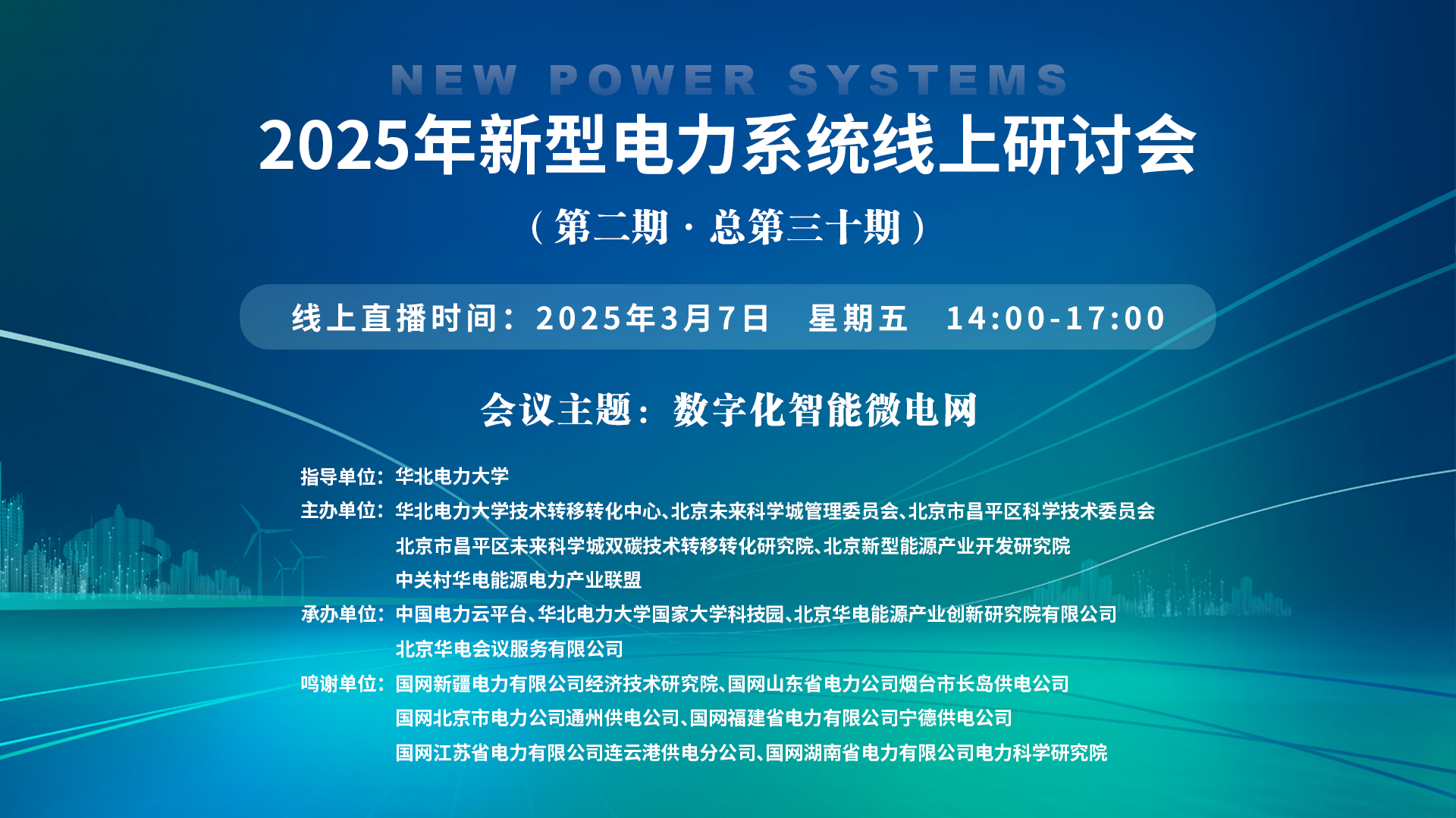 2025年新型電力系統(tǒng)線上研討會(huì)(第二期·總第三十期)一、講座主題:數(shù)字化智能微電網(wǎng) 二、講座時(shí)間:2025年3月7日 星期五 14:00-17:00 三、講座地點(diǎn):線上直播:https://wlwth.xetlk.com/sl/4ckpmo(聯(lián)系人劉敏13331120445) 四、主講人信息: (一)主講人:許葉林 主講人簡(jiǎn)介:許葉林,高...主講人:許葉林、郭浩、宋嘉琚、謝鴻、許笑、莫文慧時(shí)間:2025-03-07 14:00地點(diǎn):線上講座 -